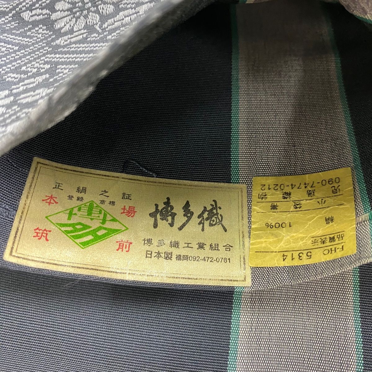 半幅帯 博多織 証紙有 草花 紗綾形 灰色 正絹 WWW_GLOBALQUALITYIMPORTS_COM