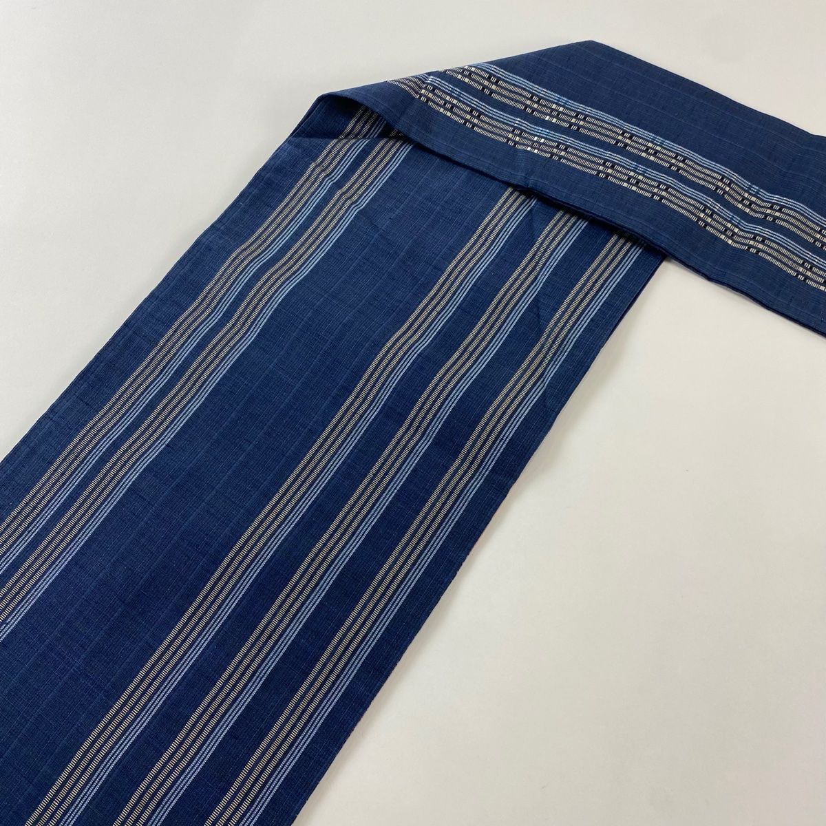 名古屋帯 証紙 南風原花織 縞 紺色 正絹 WWW_GLOBALQUALITYIMPORTS_COM