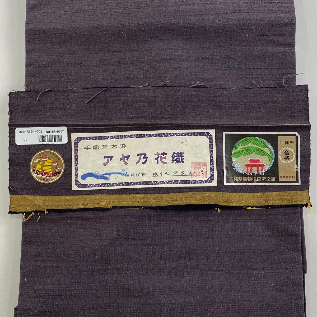名古屋帯 証紙 幾何学模様 アヤ乃花織 手織草木染 紫 正絹の検索結果