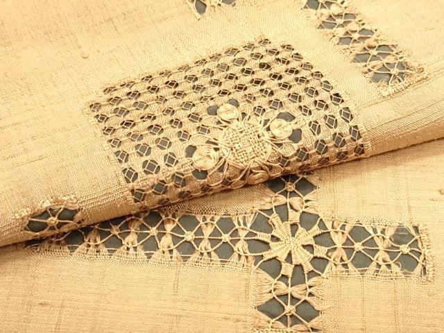 平和屋着物 中国三大刺繍 スワトウ刺繍 汕頭刺繍 総刺繍 九寸名古屋帯 紬地 幾何学色紙花文 正絹 DAAW6602ob WWW_GLOBALQUALITYIMPORTS_COM