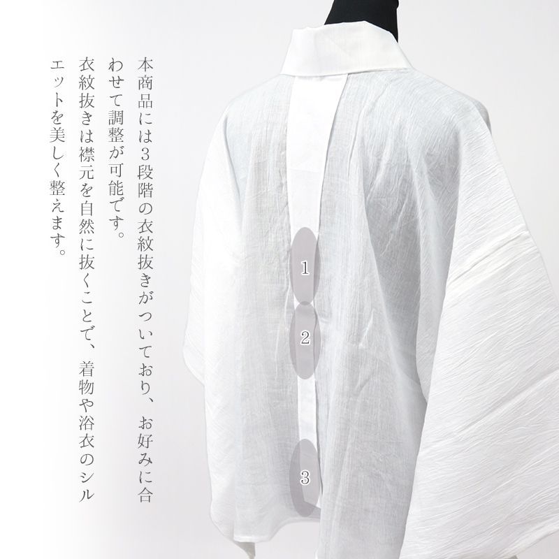 本麻手もみ楊柳 涼しい夏の半襦袢 着物 和装肌着 レディース 白 衣紋抜き 絽半襟付き 夏の半じゅばん〔L〕10012183 WWW_GLOBALQUALITYIMPORTS_COM