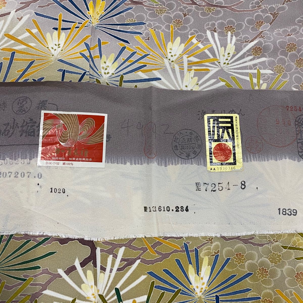 色留袖 身丈165.5cm 裄丈66cm M 袷 加賀友禅 落款 証紙 松梅 波 ぼかし 薄小豆 正絹 秀品 三つ紋 WWW_GLOBALQUALITYIMPORTS_COM