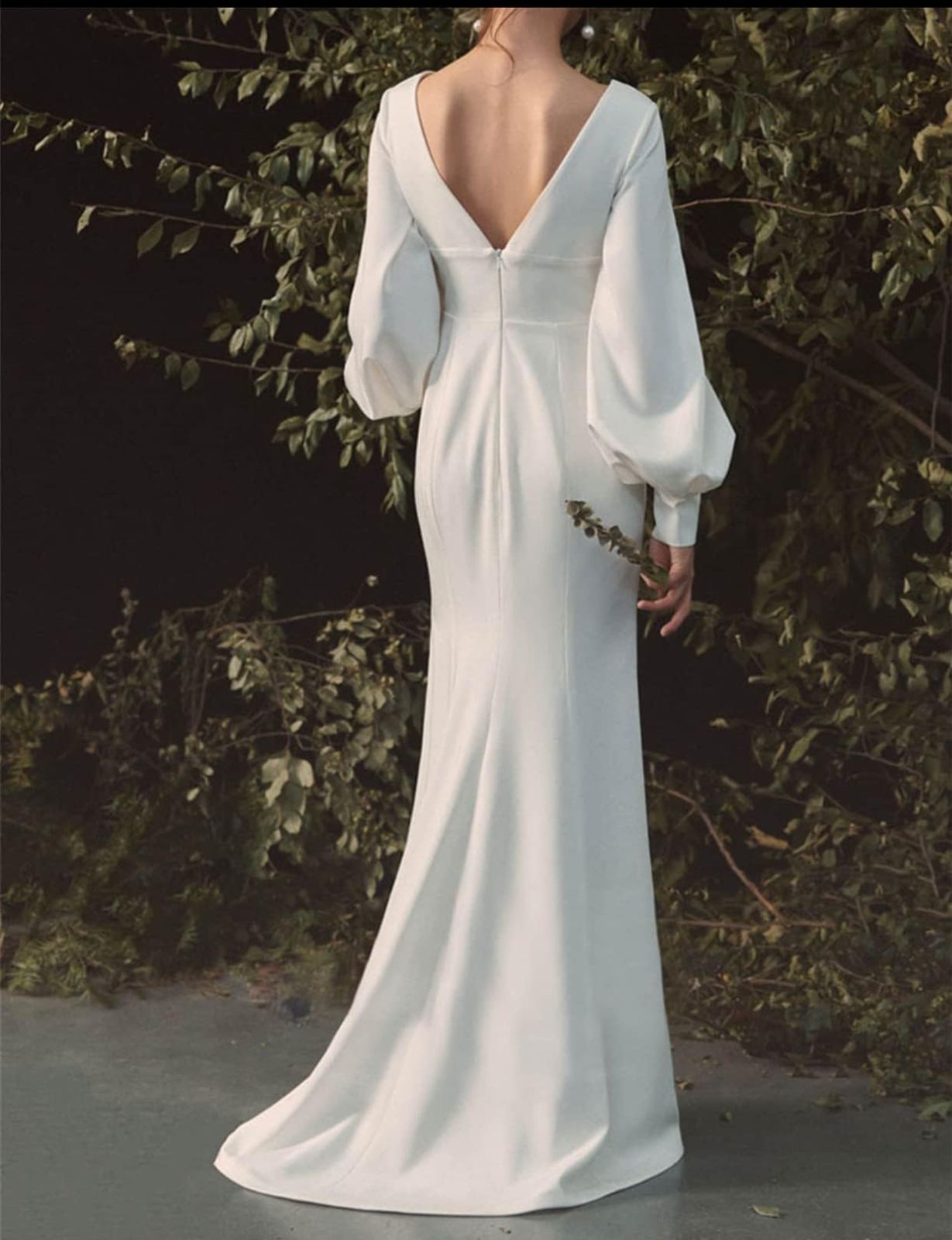 花嫁ドレス 白ワンピース ロング 結婚式二次会 発表会 マーメイド 前撮りドレス Vネック 長袖 ウエディングドレス Fiveen WWW_GLOBALQUALITYIMPORTS_COM
