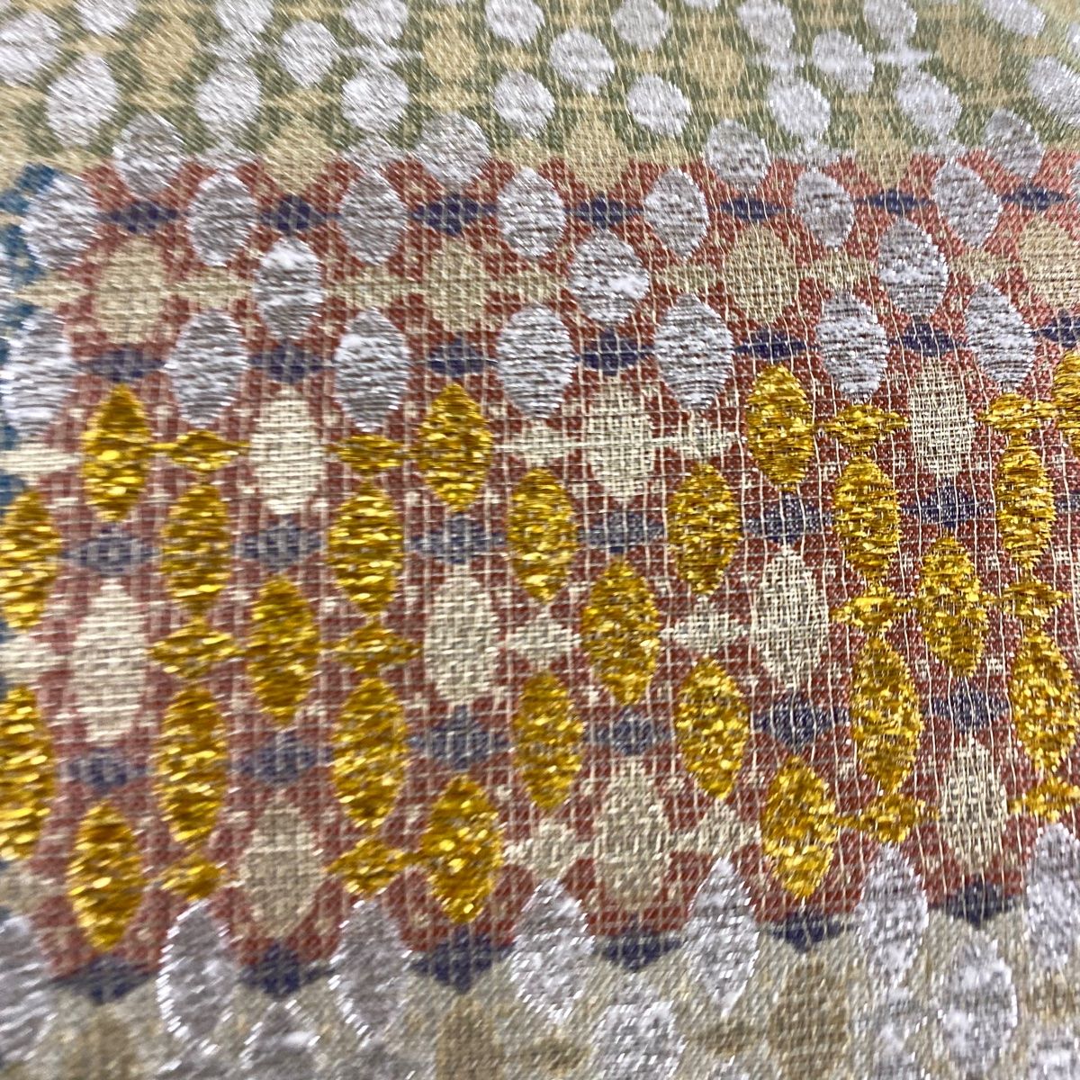 袋帯 秀品 幾何学模様 金銀糸 箔 ベージュ 六通 正絹の検索結果