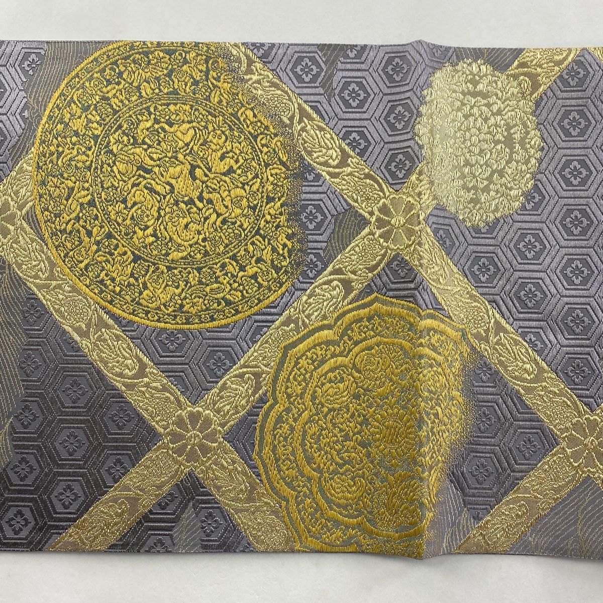 袋帯 落款 山口克爾監修 格天井葡萄鏡文 草花 金銀糸 箔 灰紫 お太鼓柄 正絹の検索結果