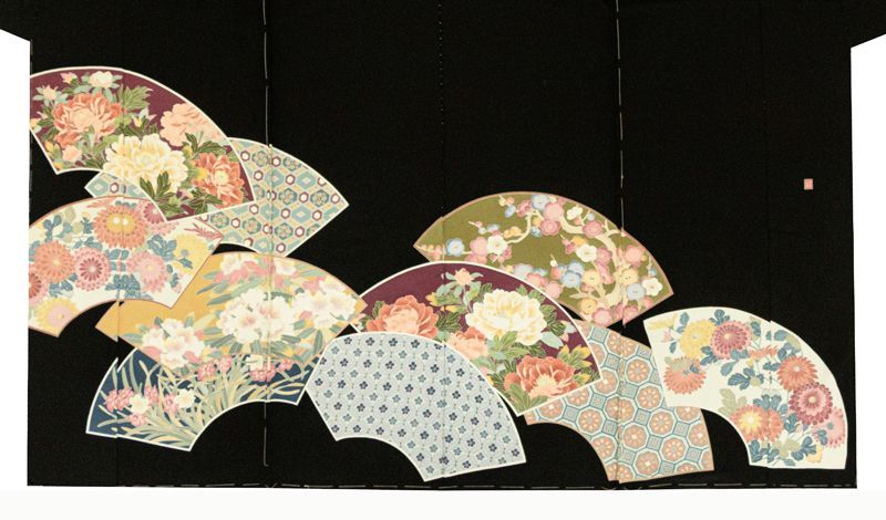 記念感謝祭 仕立無料 京加賀友禅黒留袖 伝統工芸士柳槁昭作手描加賀五彩染四季花扇面文 落款入 10012368 WWW_GLOBALQUALITYIMPORTS_COM