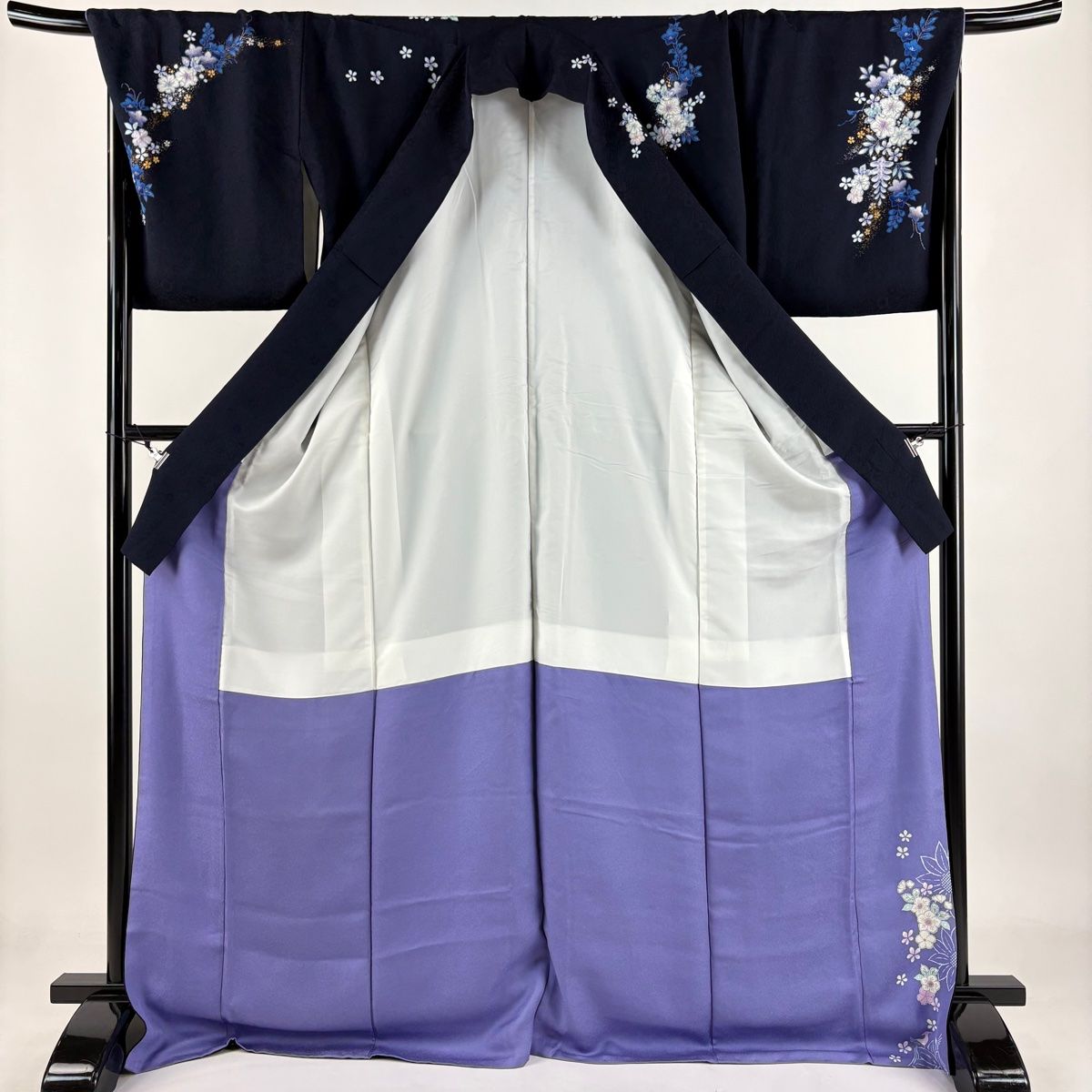 訪問着 身丈172cm 裄丈67.5cm L 袷 翠山工房 袋帯セット やまと 落款 辻が花 金銀彩 ぼかし 濃紺 正絹 WWW_GLOBALQUALITYIMPORTS_COM