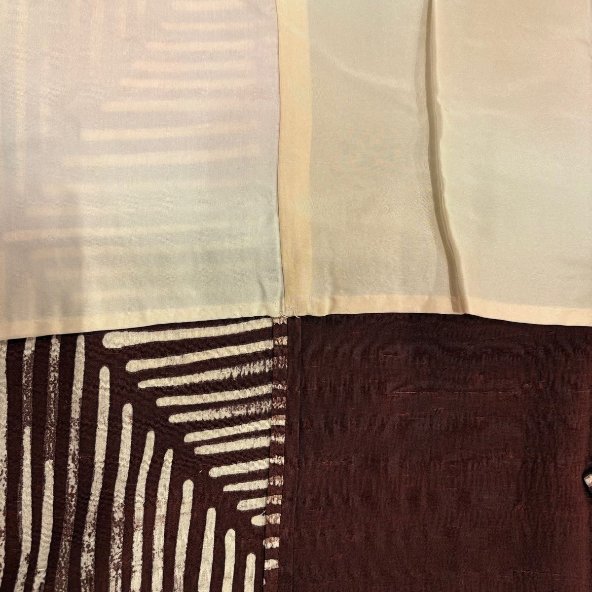 道行 身丈122cm 裄丈67.5cm L 紬地 和装コート 千代田衿 縞模様 幾何学模様 茶色 正絹 WWW_GLOBALQUALITYIMPORTS_COM