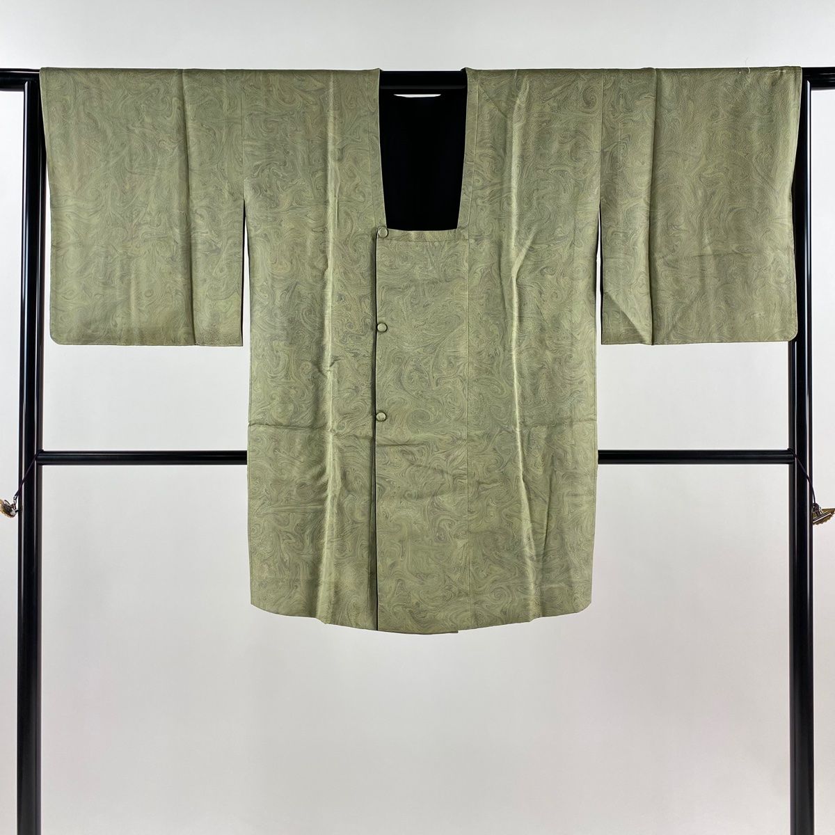道行 身丈93.5cm 裄丈64cm M 和装コート 角衿 墨流し 灰緑 正絹 秀品 WWW_GLOBALQUALITYIMPORTS_COM