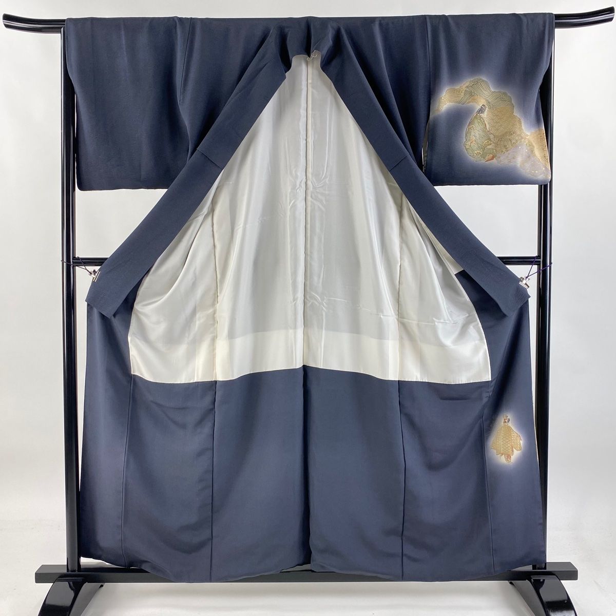 付下げ 身丈158cm 裄丈66.5cm M 袷 樽本伊勢蔵 落款 人物 波 金銀彩 ぼかし 墨色 正絹 一つ紋 WWW_GLOBALQUALITYIMPORTS_COM