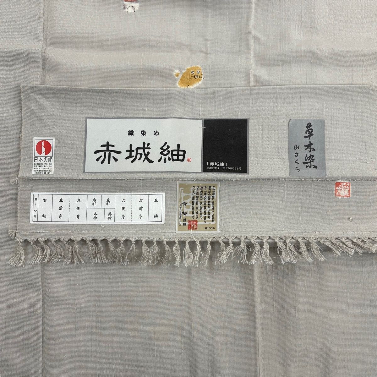 小紋 身丈156.5cm 裄丈64cm M 単衣 奇翠 青柳 赤城紬地 やまと 落款 証紙 犬 猫 絞り 灰色 正絹 WWW_GLOBALQUALITYIMPORTS_COM