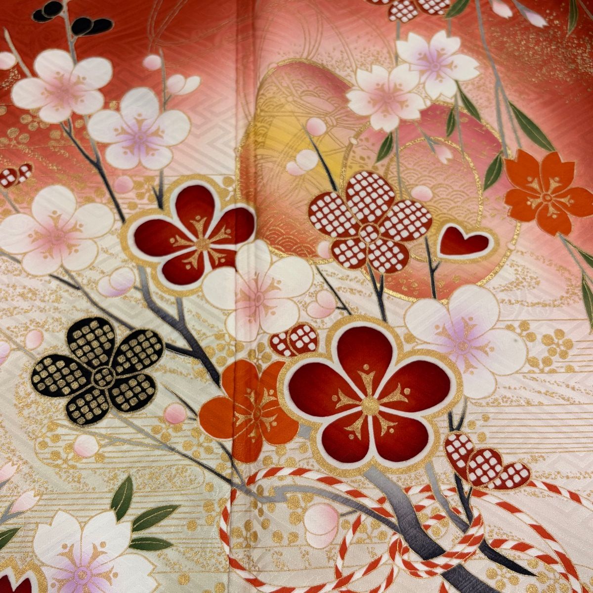 振袖 身丈156cm 裄丈64.5cm M 袷 やまと 落款 枝梅 枝垂れ桜 金彩 染め分け 赤茶 正絹 WWW_GLOBALQUALITYIMPORTS_COM