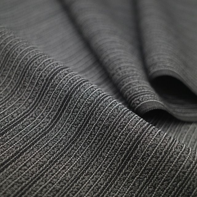 新古品 御召 着物 着尺 反物 正絹 お召 先染め 織り柄 グレー 縞 パールトーン加工済み カジュアル みやがわ 上質 春 秋 冬 着物 長羽織 羽織 コート にもお仕立ていただけます 未仕立て sb16386の検索結果