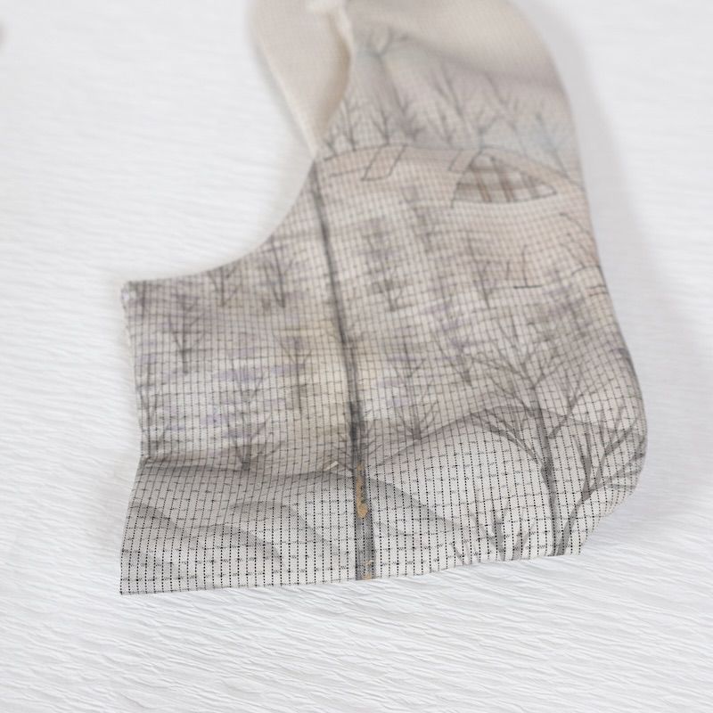 MK-1637 小紋 洗える着物 四角に蝶々 石板色 しつけ糸 トールサイズ