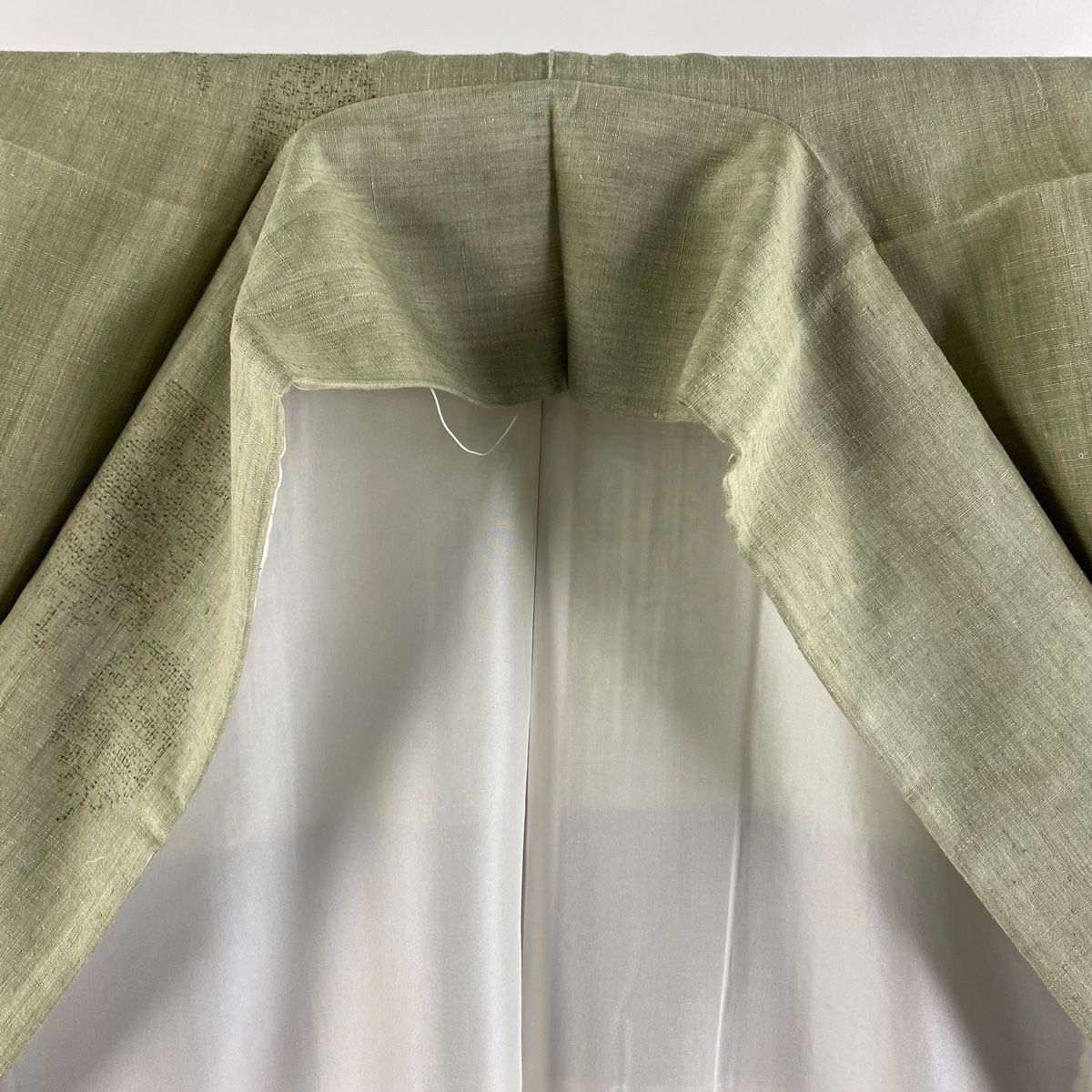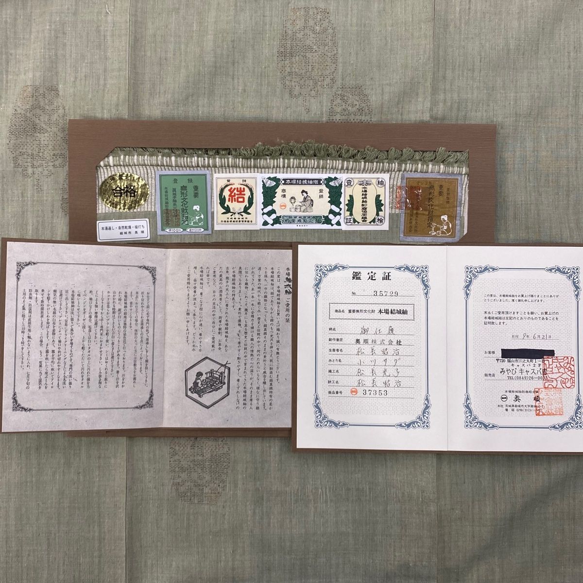 結城紬 身丈154cm 裄丈64cm M 袷 本場結城紬 奥順株式会社 お仕覆 亀甲絣 灰緑 正絹 WWW_GLOBALQUALITYIMPORTS_COM