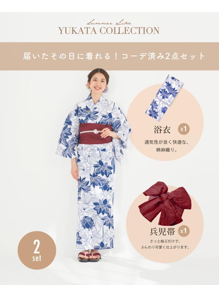 綿麻 浴衣 帯付き 2点セット 白 青 フリーサイズ レディース No.6の検索結果