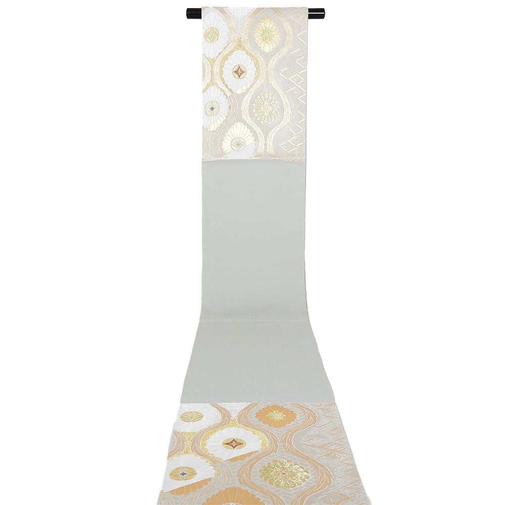 礼装用 袋帯 正絹 本草木つづれ 薄緑 金 白 菊 七宝 花菱 立涌文 Lサイズ F8286 レディース シルク ギフト フォーマル WWW_GLOBALQUALITYIMPORTS_COM