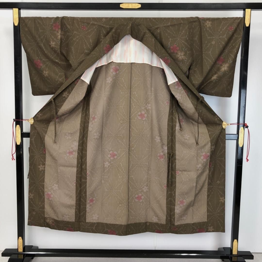 道中着 単衣 ロング 麻の葉に花柄模様 消炭黒色 H-4114の検索結果