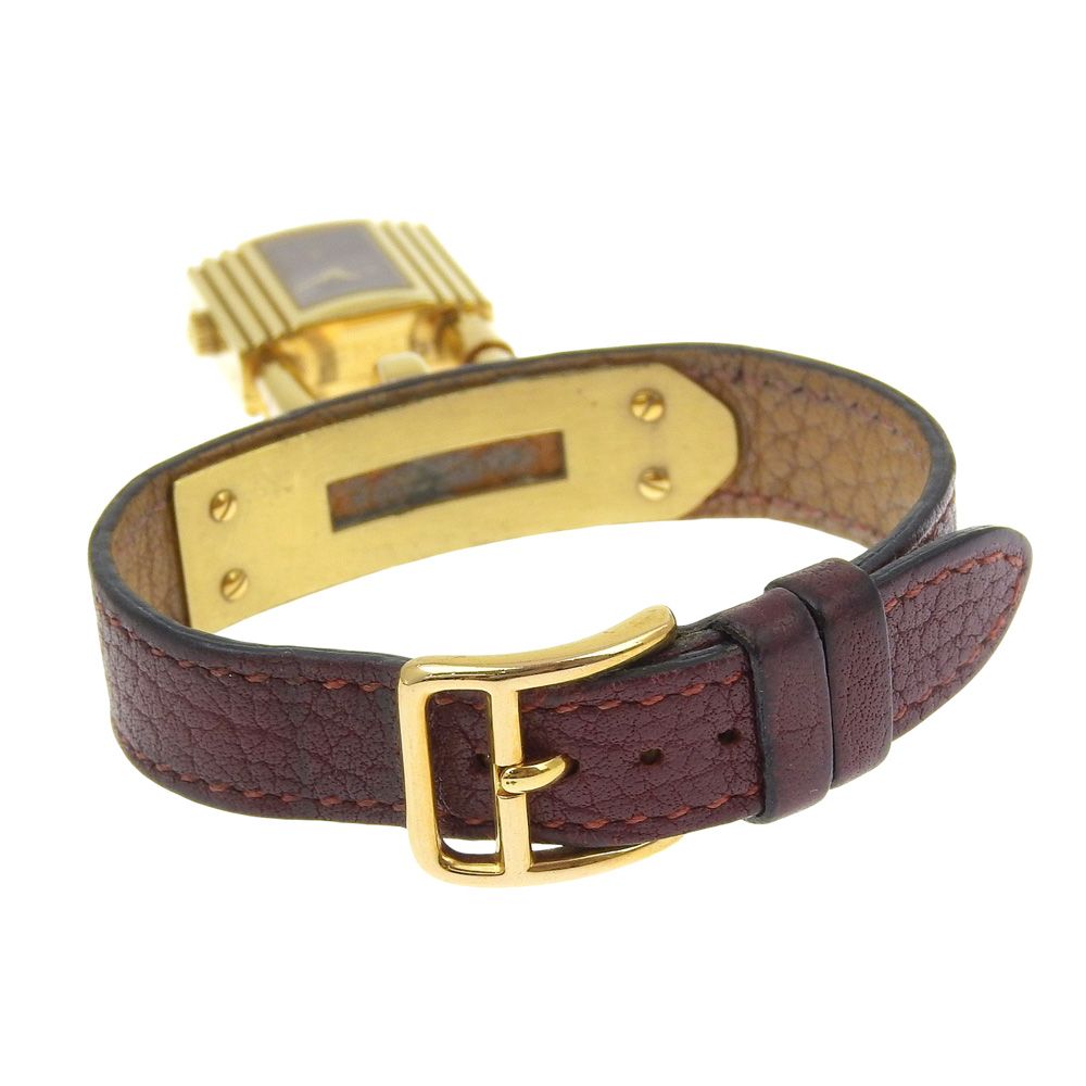 HERMES エルメス ケリーウォッチ 金メッキ×レザー クオーツ アナログ表示 レディース ワインレッド文字盤 腕時計 WWW_GLOBALQUALITYIMPORTS_COM