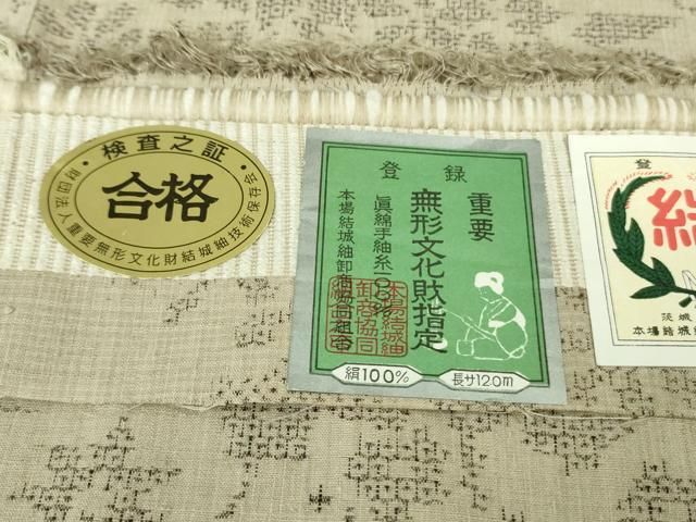 平和屋本店 上 本場結城紬 重要無形文化財 100亀甲 飛び亀甲柄 風景花文 灰白色地 証紙付き DZAB1350kh5 WWW_GLOBALQUALITYIMPORTS_COM