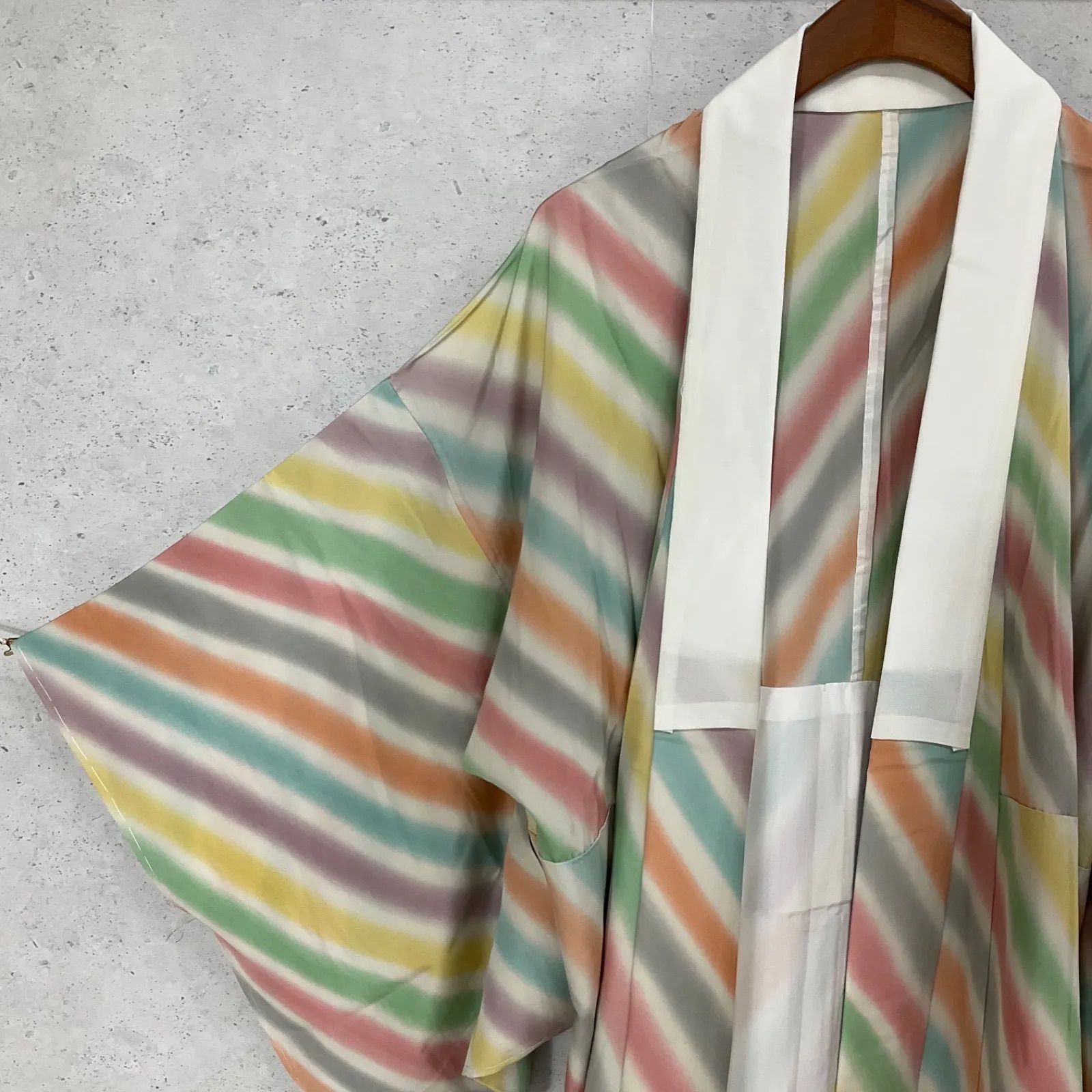 kimono one 同然 長襦袢 仕付け糸付き 虹模様 暈し染め 正絹 単衣 半襟付き 袖無双 衣紋抜き付き 居敷当て付き 裄長 スーパーゆーびガード加工 裄68.5肩丈135 小紋紬附下訪問着留袖袷単衣夏着物 K1062の検索結果