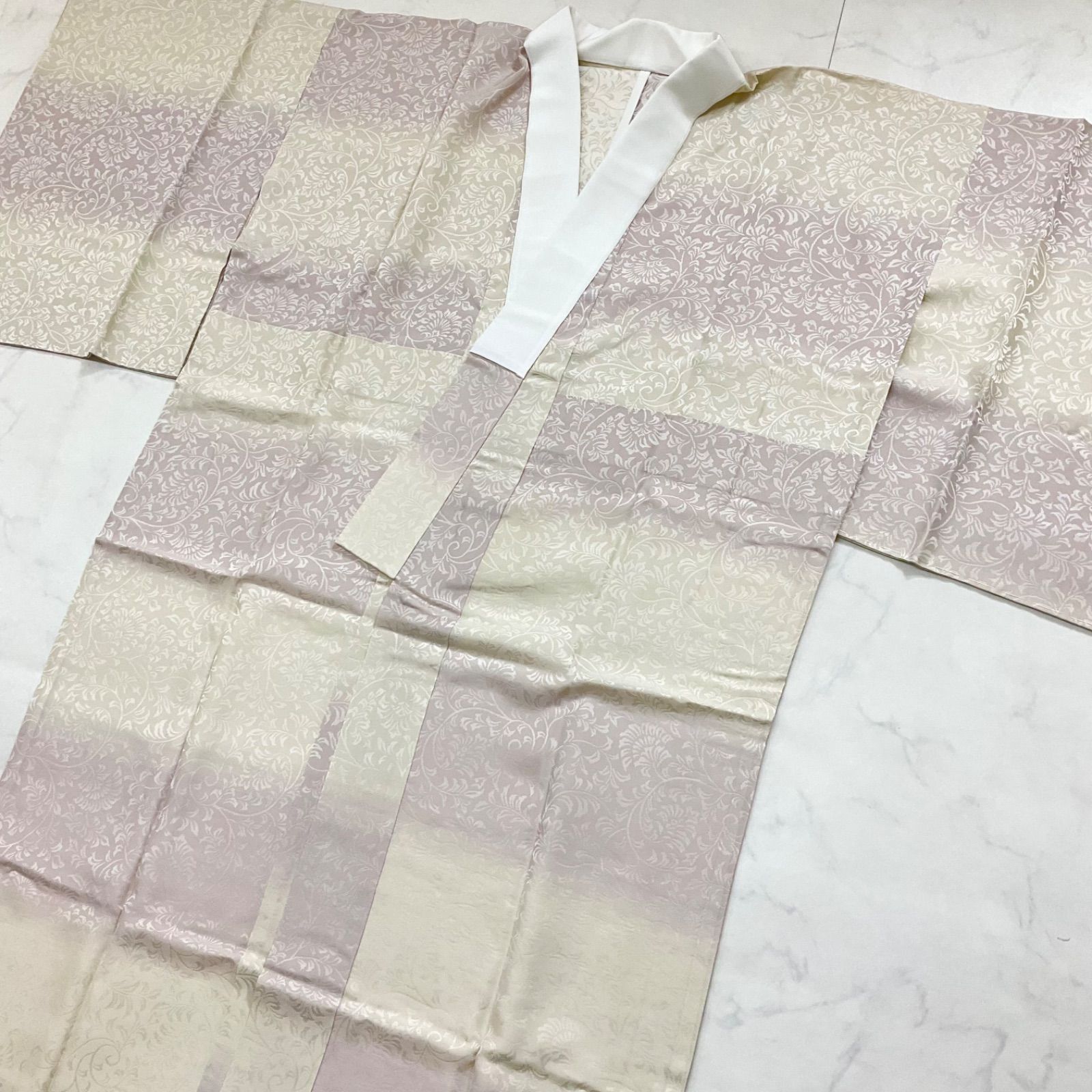 kimono one 同然 特選 西陣先染襦袢 長襦袢 仕付け糸付き ガード加工 やまと誂製 余り布付 単衣 居敷当て付き 白半衿付 薄紫 クリーム 裄70肩丈133 小紋紬附下訪問着留袖袷単衣夏着物 K1150 WWW_GLOBALQUALITYIMPORTS_COM