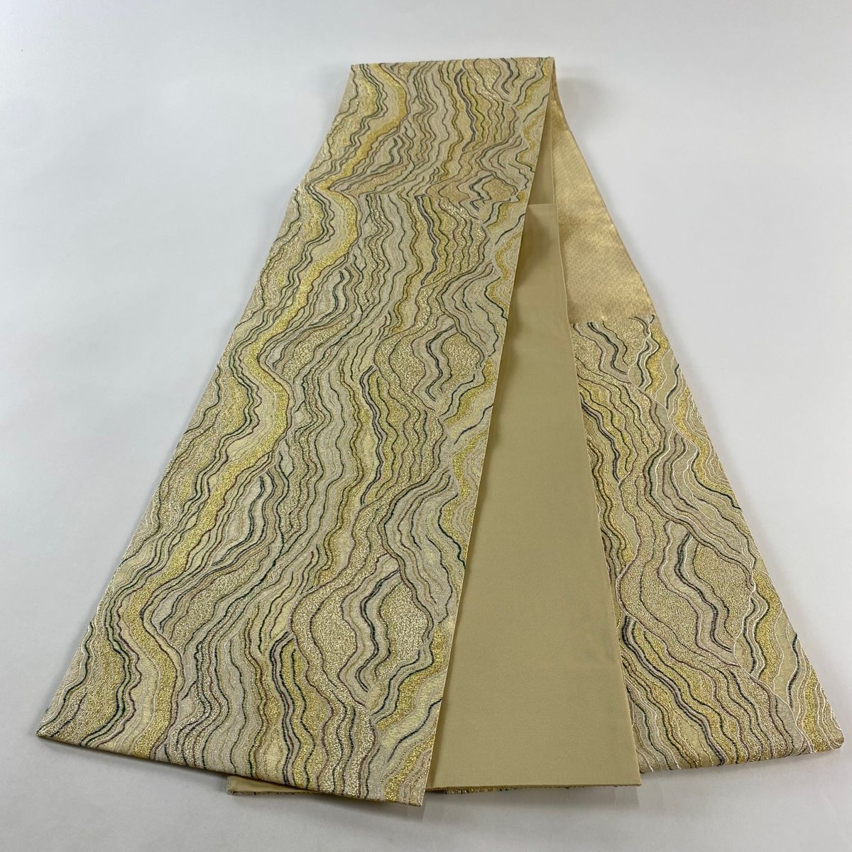 袋帯 秀品 よろけ縞 幾何学模様 箔 ベージュ 六通 正絹の検索結果