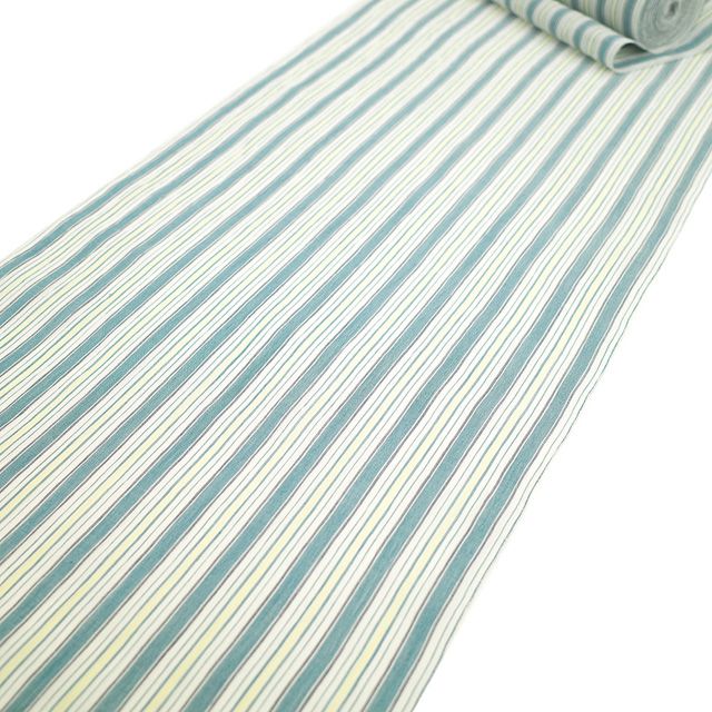 こちらのお品は 白地に青緑・薄黄色・黒 で縞が織り出された素敵なお品。