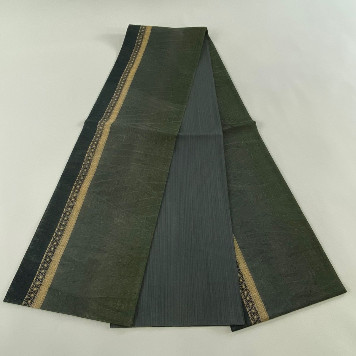 袋帯 秀品 縞 幾何学模様 灰緑 全通 正絹 WWW_GLOBALQUALITYIMPORTS_COM