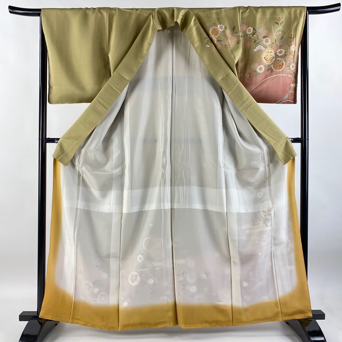 訪問着 身丈162cm 裄丈64cm M 袷 蝶 草花 金彩 ぼかし 鶯色 正絹 秀品の検索結果