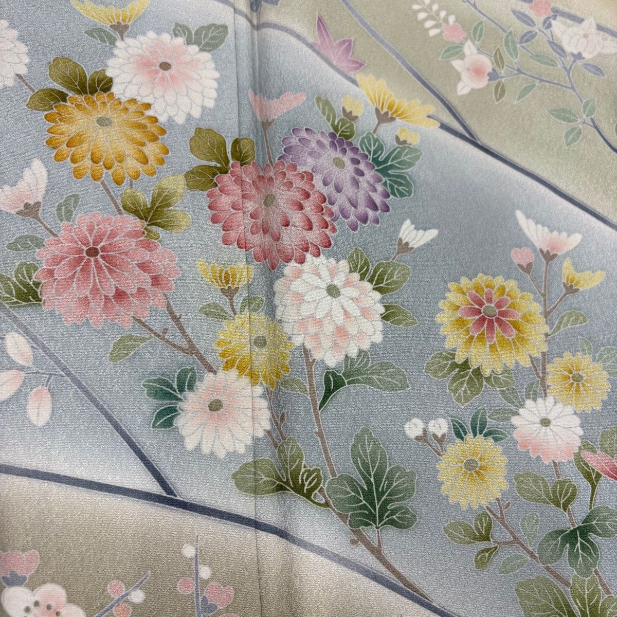 訪問着 身丈166.5cm 裄丈67cm M 袷 菊 梅 染め分け ぼかし 鶯色 正絹の検索結果