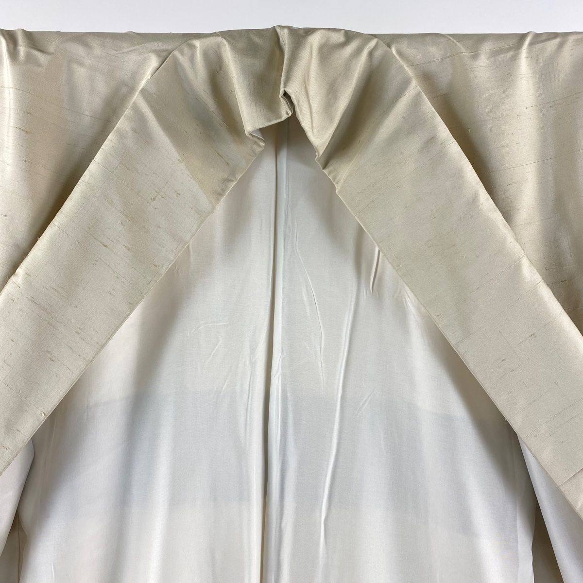 付下げ 身丈155cm 裄丈63cm S 袷 草花 縞 刺繍 銀糸 ベージュ 正絹