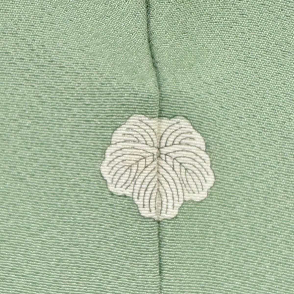 付下げ 身丈155cm 裄丈64cm M 袷 華文 逆さ雲取 汕頭刺繍 薄緑 正絹 秀品 一つ紋の検索結果