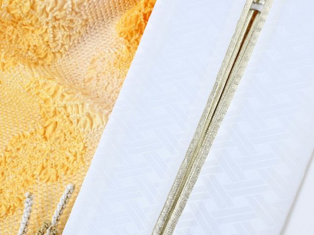振袖用 正絹 四ッ巻 絞り 柄入り 帯揚げ 帯締め 重ね衿 3点セット 黄橙白 h-460-kの検索結果