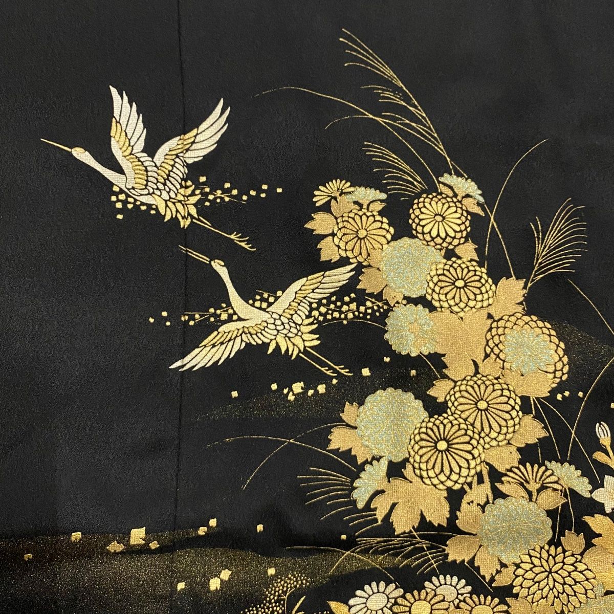 訪問着 身丈162.5cm 裄丈67cm M 袷 菊 鶴 金銀彩 黒 正絹 秀品の検索結果