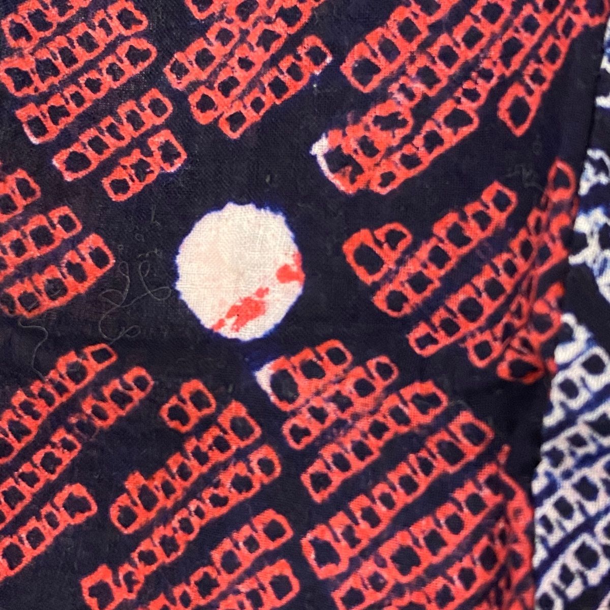 表地所々にヤケ、表地所々にシミ、上前にシワ、後身頃の腰付近に染めむらがございます。