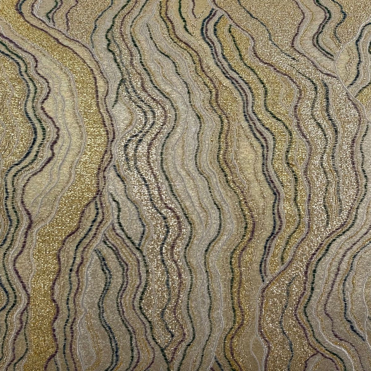 袋帯 秀品 よろけ縞 幾何学模様 箔 ベージュ 六通 正絹の検索結果