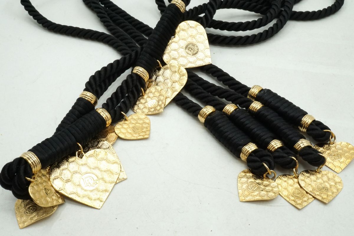 クリスチャン ディオール ベルト ロープ ハート ハニカム ロゴ ウエストマーク ゴールド 黒 ブラック Christian Dior 3611k WWW_GLOBALQUALITYIMPORTS_COM