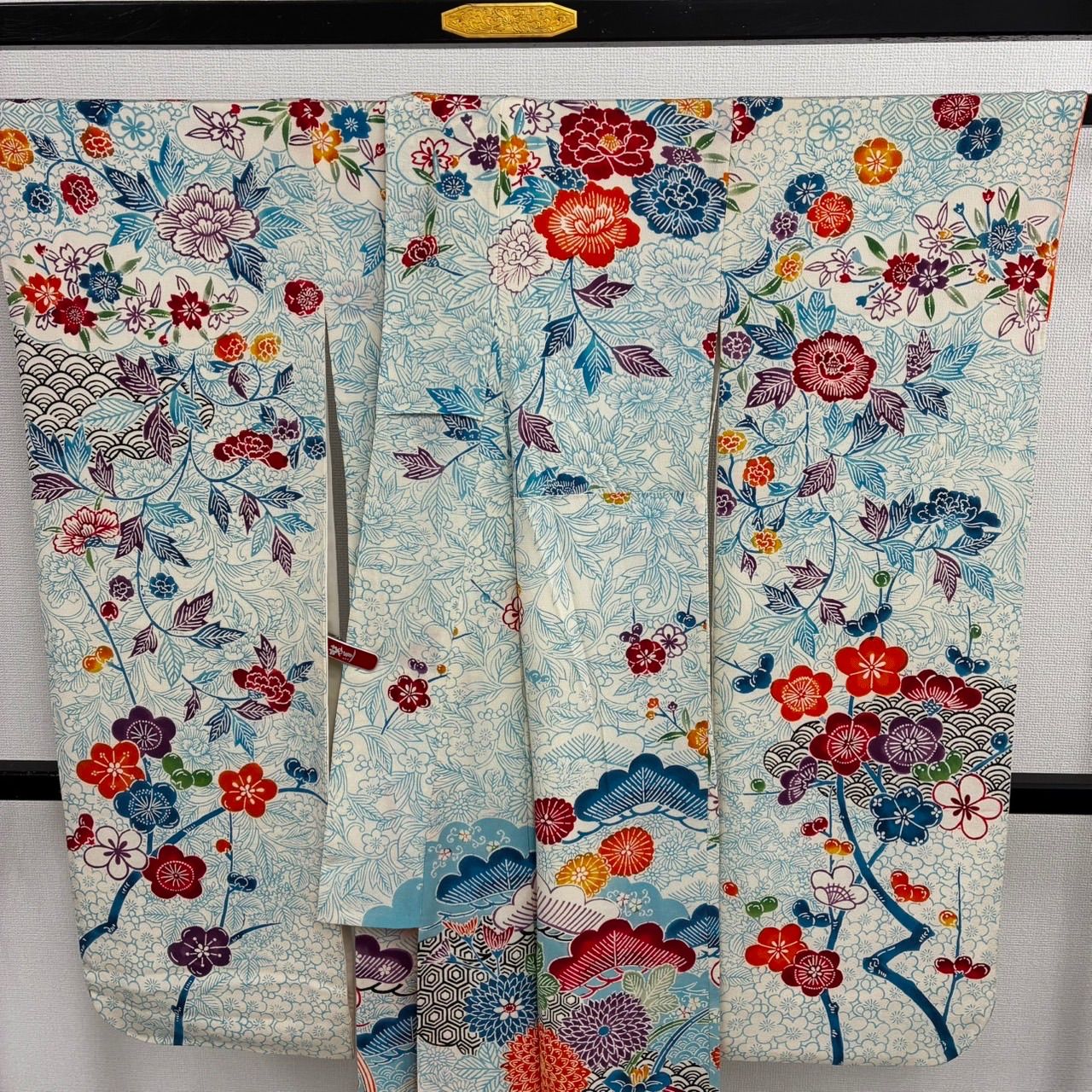 振袖 身丈172.5cm 裄丈66.5cm M 袷 家屋 松竹梅 ぼかし えんじ色 正絹 秀品