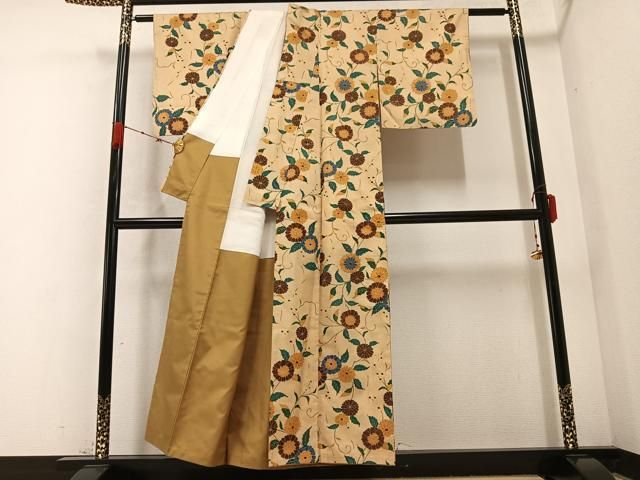 平和屋着物 上質な紬 単衣 花唐草文 正絹 AABB2250fy