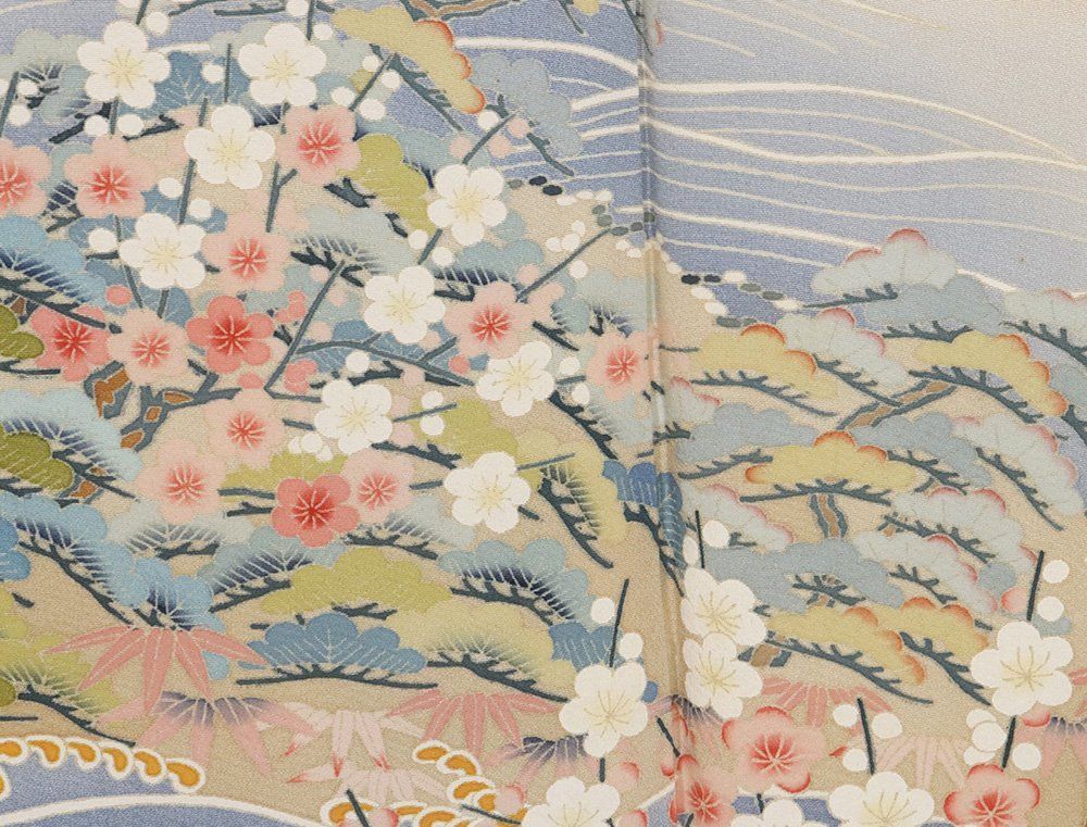 本加賀友禅 吉川久仁氏作 手描き友禅 訪問着 袷 正絹 茶ベージュ 青グレー 茶屋辻 松竹梅 流水 SMサイズ ki28963 ほうもんぎ みの検索結果