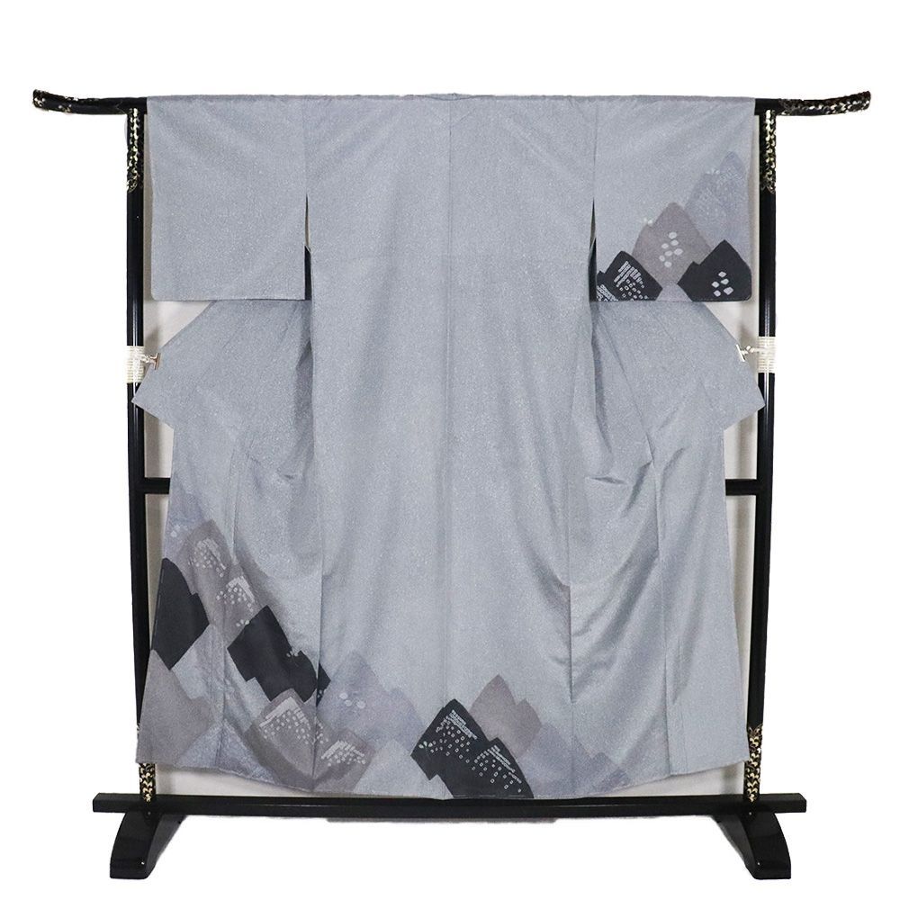本場縞大島紬 絞り訪問着 袷 正絹 ライトグレー 薄グレー 墨黒 絞り 遠山 鹿の子 箔 南天 Sサイズ ki31097 レディース み WWW_GLOBALQUALITYIMPORTS_COM