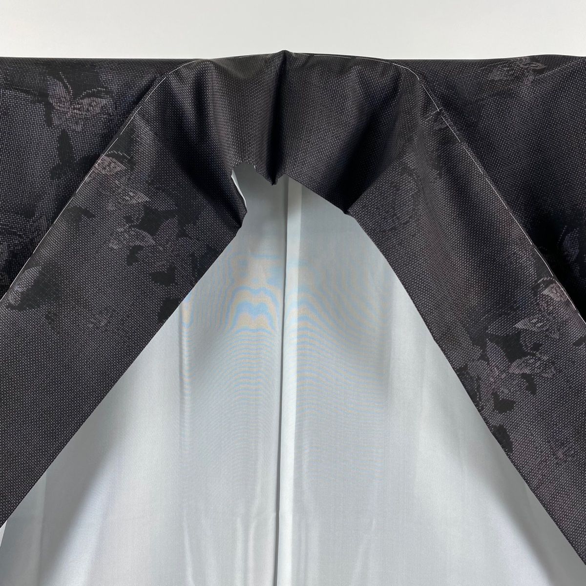 大島紬 身丈169cm 裄丈66.5cm M 袷 名匠たかし しろたえ紬 証紙 蝶 草花 灰白 正絹
