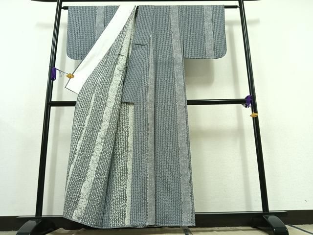平和屋着物 小紋 単衣 縞 洗える着物 AABC0325fy