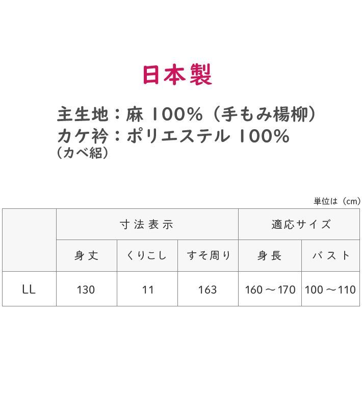 本麻手もみ楊柳 きものスリップ LLサイズ ホワイト 和装肌着 下着 肌襦袢 ワンピース komono-00111-03 WWW_GLOBALQUALITYIMPORTS_COM