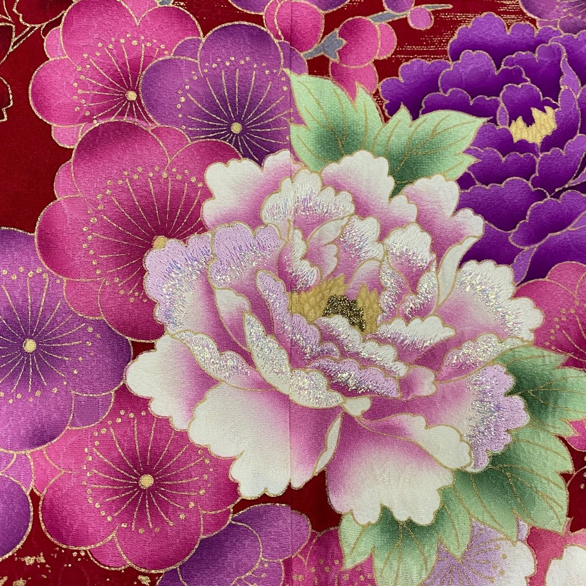 振袖 身丈170cm 裄丈67cm M 袷 牡丹 桜 箔 金彩 赤 正絹の検索結果