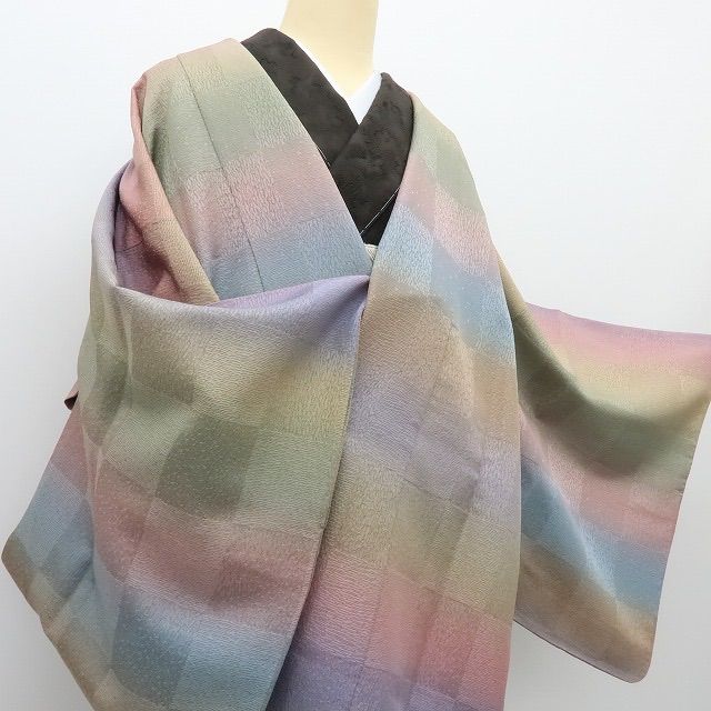 道中着 身丈139cm 裄丈71cm L 和装コート 縦縞 ぼかし 灰紫 正絹 秀品