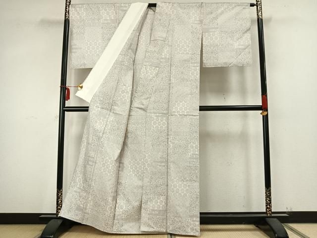 平和屋着物 本塩沢 単衣 花唐草文 110亀甲 正絹 DAAV5823az