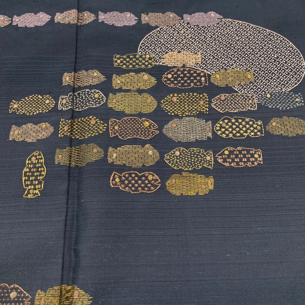 訪問着 身丈167cm 裄丈67cm M 袷 紬地 魚 縞 刺繍 濃紺 正絹の検索結果