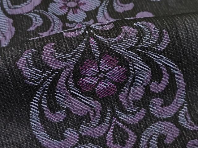 平和屋本店 上 紬 型染 舞蝶地紙花文 宍色地 ロング丈 DZAB0807kh5